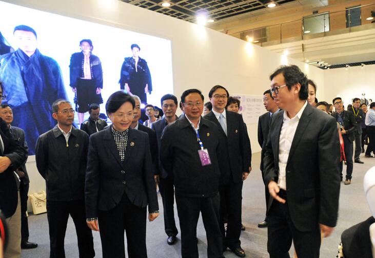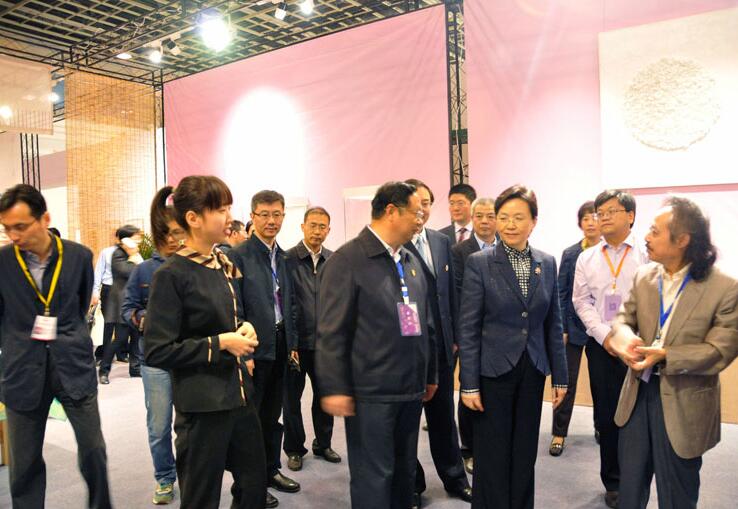 江蘇省委宣傳部長(zhǎng)王燕文參觀“紫金獎(jiǎng)”民間工藝與時(shí)裝設(shè)計(jì)專項(xiàng)賽作品大展